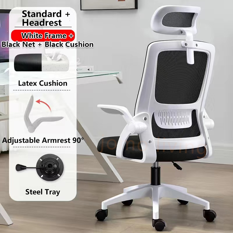 【Local Ready Stocks】Ergonomic Comfort Office Chair with Latex Cushion Backrest + Lumbar Support Design Spine Relieves