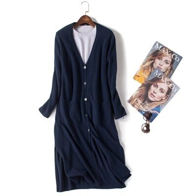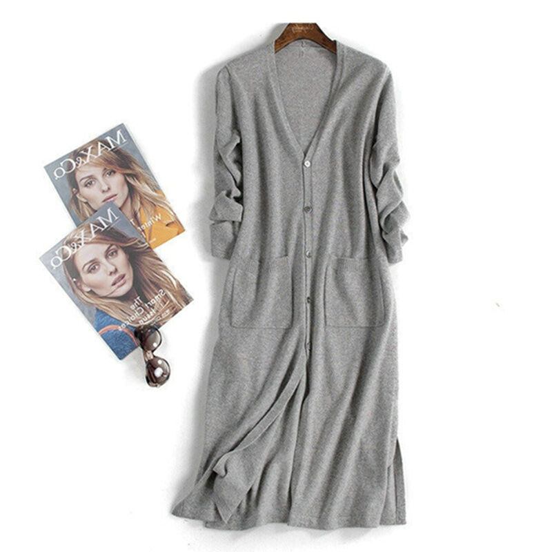 Over-the-Knee Mid-Length Knitted Cardigan for Women Outdoor Spring, Autumn and Winter V-neck Button Sweater Coat Simple and Versatile Loose