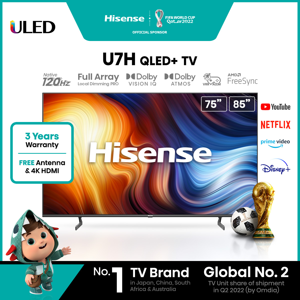 ?2022 Hisense 75" 85" QLED+ / ULED 4K Smart TV (120Hz Native) ✅ FREE Delivery & Assembly ✅ FREE 3 Years Onsite Warranty ✅ FREE 4K HDMI ✅ FREE Antenna ? FREE DELIVERY 2-3 WORKING DAYS ❤️ 365 days Customer Service ? 100% Good Reviews